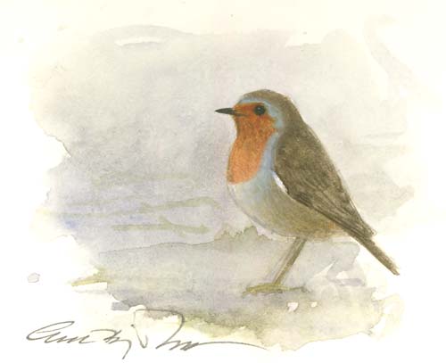 Nr 2. Rödhake - akvarell 12,5 x 10,5 cm