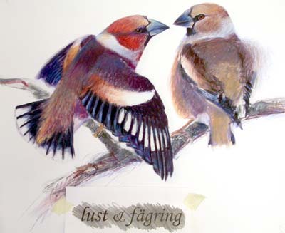 9 mars 2005 - Alla arterna är nu inlagda men ännu återstår redigering och slutlig inbördes placering och storlek av enskilda fåglar. Vidare kommer jag att teckna in något direkt i det slutliga verket. Hur detta kommer att bli vet jag inte vid detta tillfälle. Men nu är det dags att lämna till reprofirma och tryckeri.