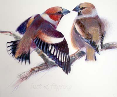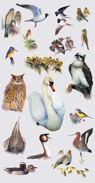15 april 2005 - Redigerar löpande layouten i fråga om inläggning, placering och inbördes storlek på alla fåglarna. Många större och smärre steg och ändringar innan verket känns färdigt.