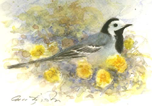Nr 1. Sädesärla - akvarell 14 x 10 cm