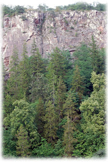 reser sig Ombergs branter. Från krönet av Västra väggar vinkar turisterna. Man