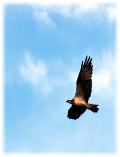 möter oss visslande på hög höjd över båten.