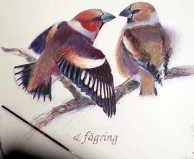 9 mars 2005 - Alla arterna är nu inlagda men ännu återstår redigering och slutlig inbördes placering och storlek av enskilda fåglar. Vidare kommer jag att teckna in något direkt i det slutliga verket. Hur detta kommer att bli vet jag inte vid detta tillfälle. Men nu är det dags att lämna till reprofirma och tryckeri.