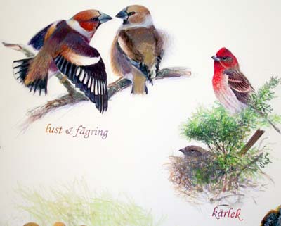 15 april 2005 - Redigerar löpande layouten i fråga om inläggning, placering och inbördes storlek på alla fåglarna. Många större och smärre steg och ändringar innan verket känns färdigt.