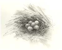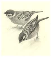 I samband med denna presentation kan jag härmed också erbjuda ett grafiskt blad. Det är ett motiv av två pilfinkar i en buske av blommande snår. Originalet är bokens omslag.